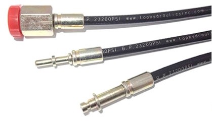 Top Hydraulics replaces the OEM hose material on your complete convertible top hose assembly with far superior material. The OEM hoses are rated at 3,000 psi; Top Hydraulics' hoses are rated at a burst pressure of 23,200 psi!