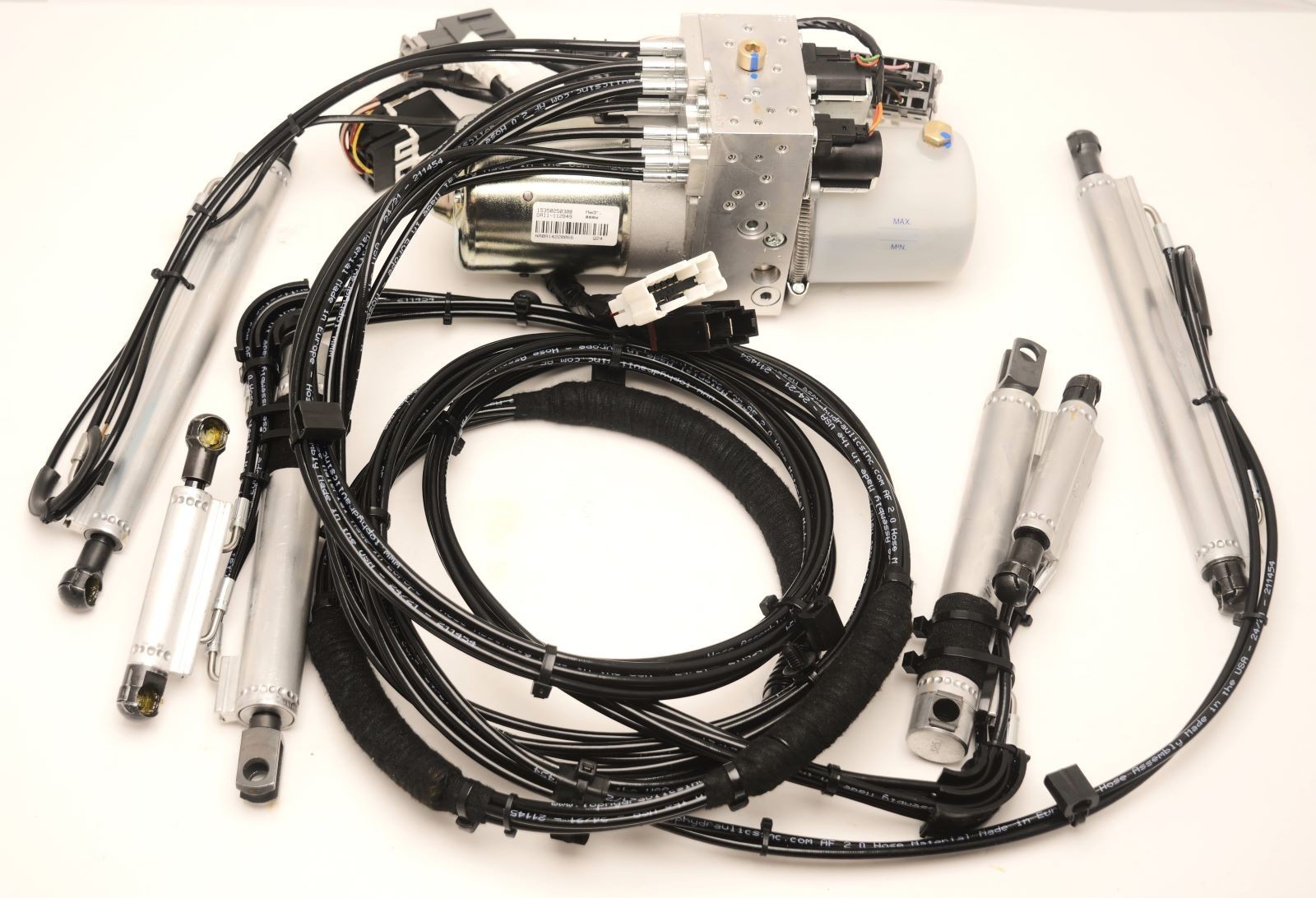 This is a special core exchange option only. Order a set of cylinders, new, upgraded hoses, and a rebuilt hydraulic pump unit directly from our stock and send back your old parts for a refund of your $600 core deposit. The hoses and cylinders ship connected to the pump and the system ships filled with fluid. You reuse the electrical harness from your original system.