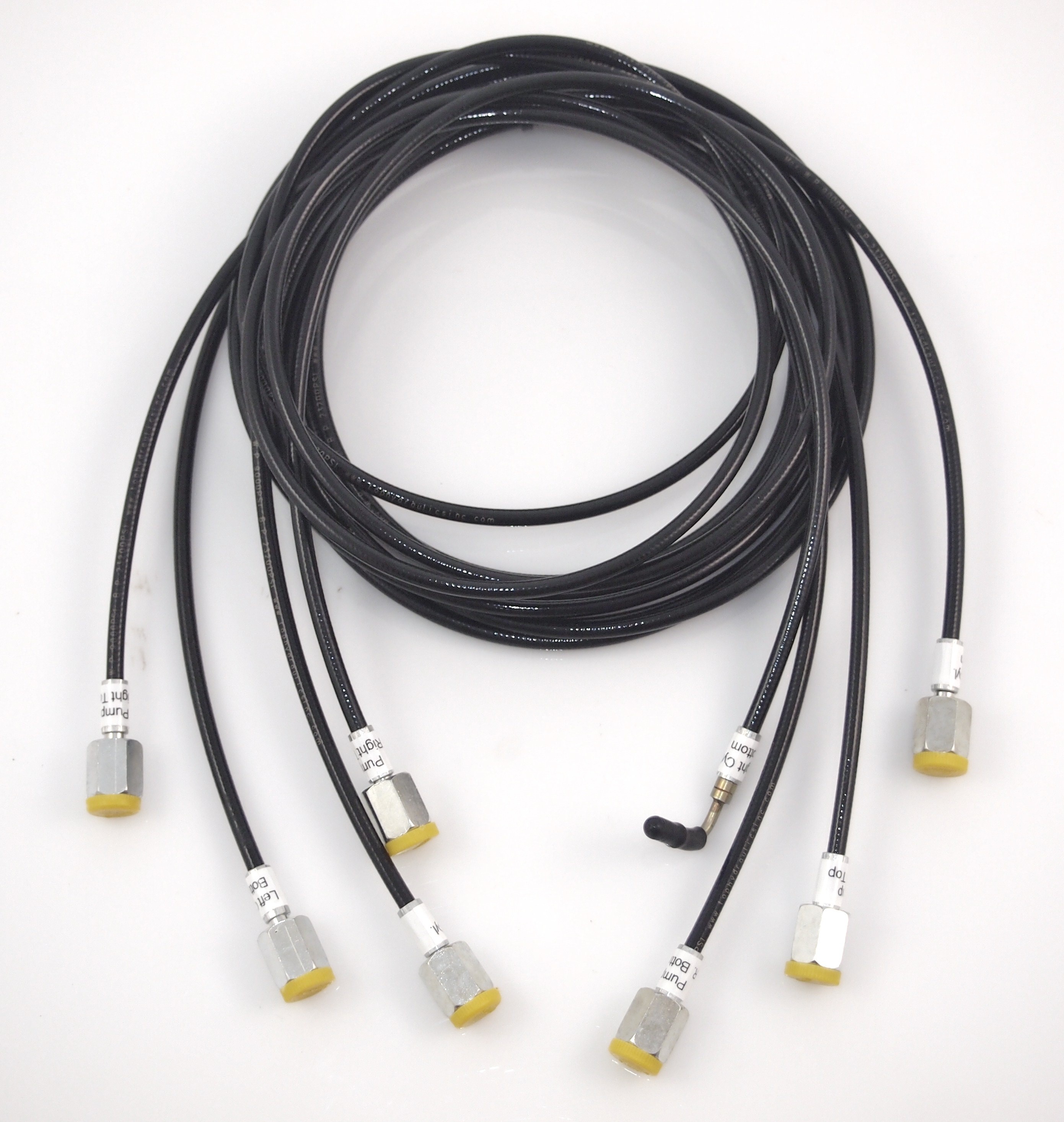 Top Hydraulics replaces the OEM hose material on your four rear convertible top hoses with far superior materials. The OEM hoses are rated at an operating pressure of 3,000 psi; Top Hydraulics manufactures these hoses with a rated burst pressure rating of 23,200 psi. The Jaguar system pressure peaks between 1,500 and 1,600 psi.