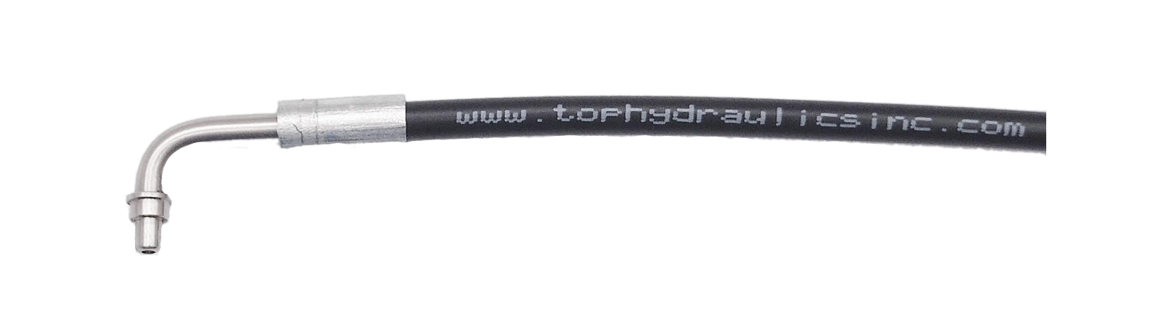 You can identify the hose you need by the two-digit number printed in white ink onto the black hose material, about an inch from the metal fitting. Top Hydraulics' hoses are superior to the original hoses, yet they provide a perfect fit. Each hose shipment comes with brief installation instructions, o-rings for every hose end, and snap ring installation tool for hose installation on the pump end.