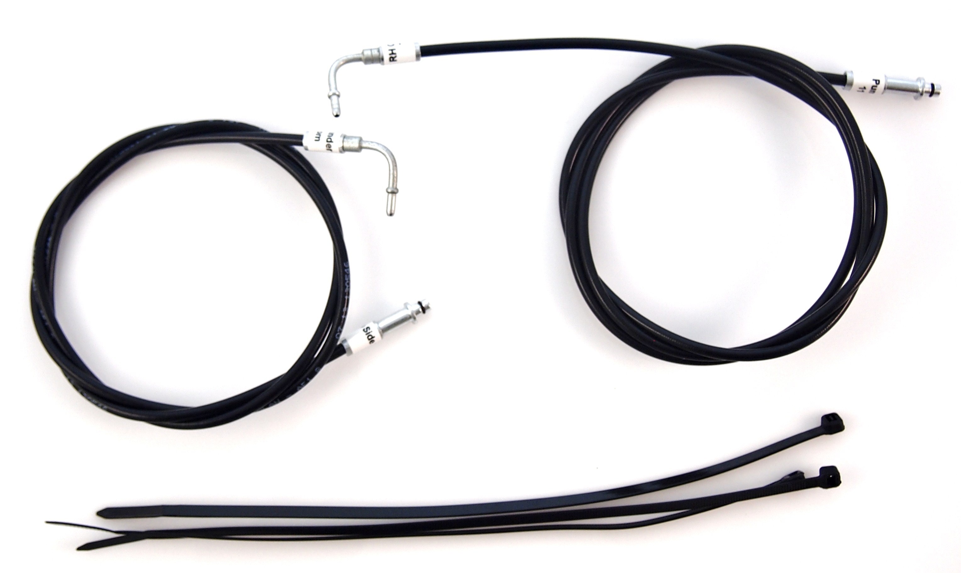 VW part number 1Y0871794A. Made of far superior material, and easier to install than originals. The hose material used has been proven in many thousands of convertibles already, and without failure so far. Clearly labeled, comes with Viton o-ring for the pump fitting, and zip-ties to install exactly as the OEM hoses.