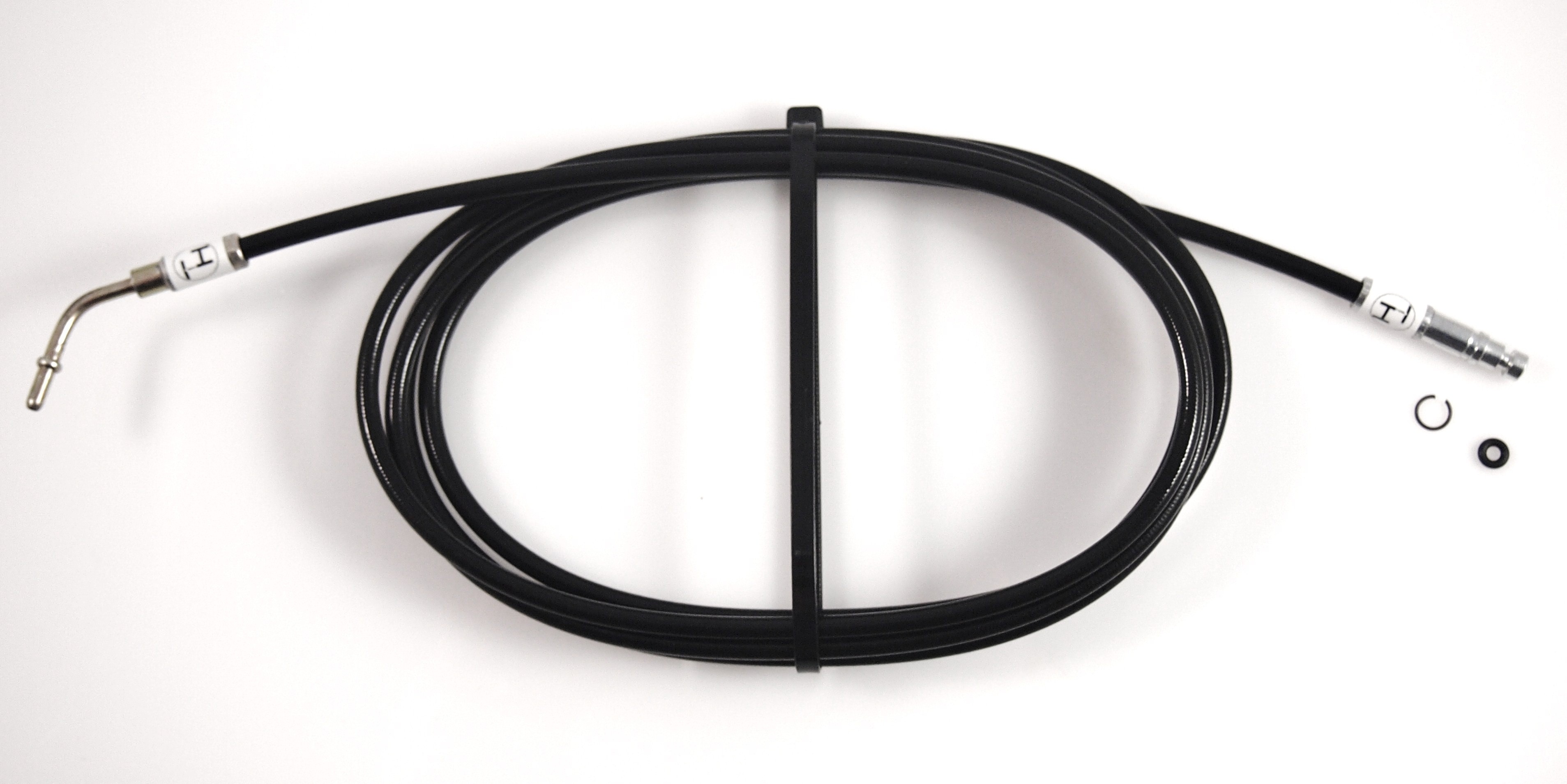 Made in the USA with German hose material. Comes with o-ring, snap ring, and snap ring installation tool (one per order) for hose installation on the pump end.